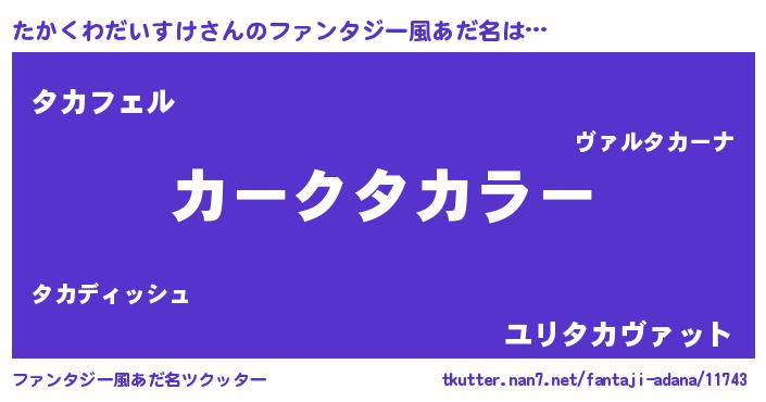 | 男性向けラノベタイトル風あだ名 | 『うちのたかくわだいすけが世界を掌握している!』 |