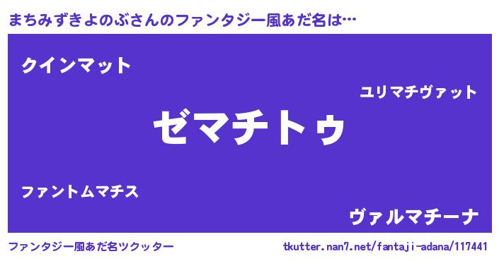 | 意味不明あだ名 | 『自称まちみずきよのぶ』 |