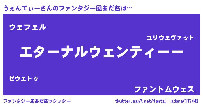 | 女子向けラノベタイトル風あだ名 | 『うぇんてぃーの雑貨屋さん』 |