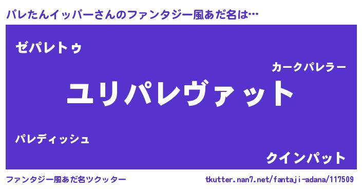 | 意味不明あだ名 | 『ニラ科パレたんイッパー属』 |