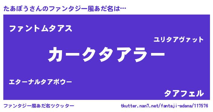 | ヒーロー風カッコイイあだ名 | 『魔戒騎士タア』『スーパータアボウ』 |
