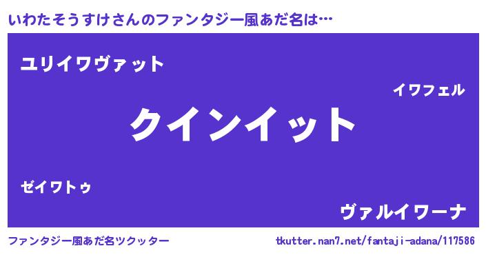 | 男性向けラノベタイトル風あだ名 | 『おまえをオタクにしてやるから、俺をいわたそうすけにしてくれ! 』 |