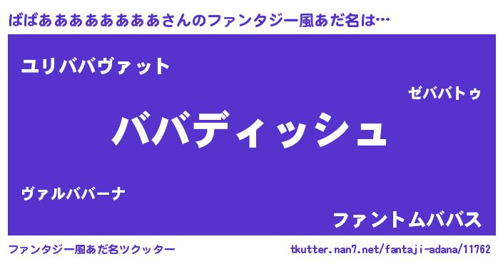 | 男性向けラノベタイトル風あだ名 | 『ばばああああああああという概念が存在しない退屈な世界 』 |