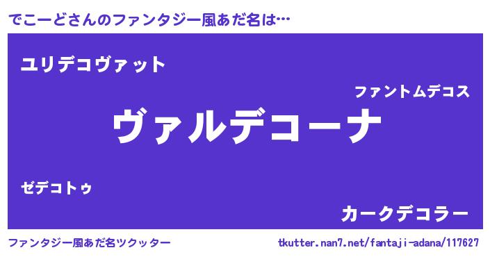 | 男性向けラノベタイトル風あだ名 | 『この素晴らしい世界にでこーどを!』 |