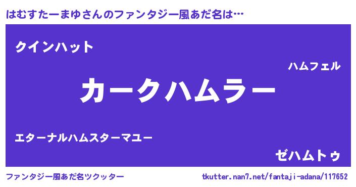 | 欧米人風あだ名 | 『アンジェラ・はむすたーまゆ』 |