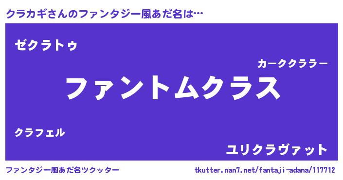 | 男性向けラノベタイトル風あだ名 | 『ダンジョンにクラカギを求めるのは間違っているだろうか』 |