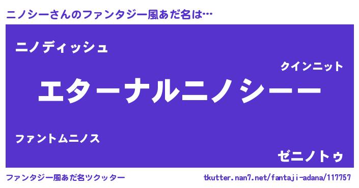 | 女子向けラノベタイトル風あだ名 | 『ニノシーの雑貨屋さん』 |