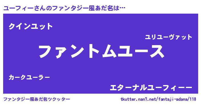 | ポケモン風あだ名 | 『ヒユーフィー』『ユックウザ』 |
