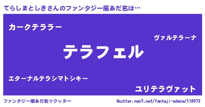 | ヒーロー風カッコイイあだ名 | 『スーパーテラシマトシキ』 |
