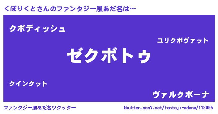 | 意味不明あだ名 | 『自称くぼりくと』『永久保存くぼりくと』 |