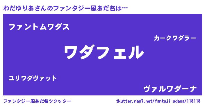 | ポケモン風あだ名 | 『ワダチュウ』『ヒワダユリア』 |