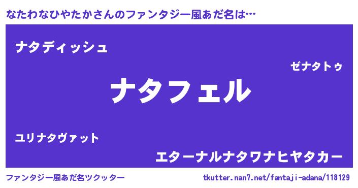| ポケモン風あだ名 | 『ナタチュウ』『ゼニナタ』 |