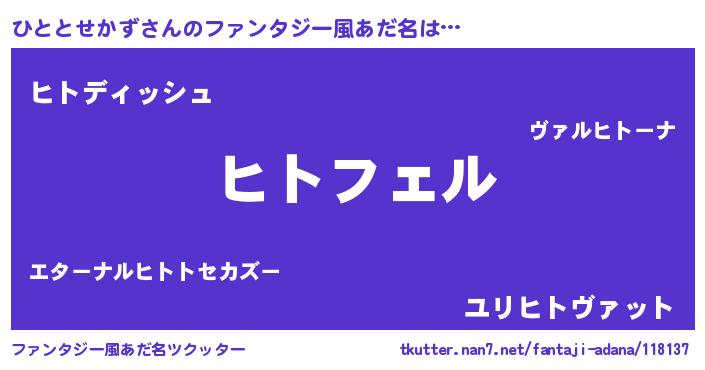 | ヒーロー風カッコイイあだ名 | 『スーパーヒトトセカズ』『仮面ヒトダー』 |
