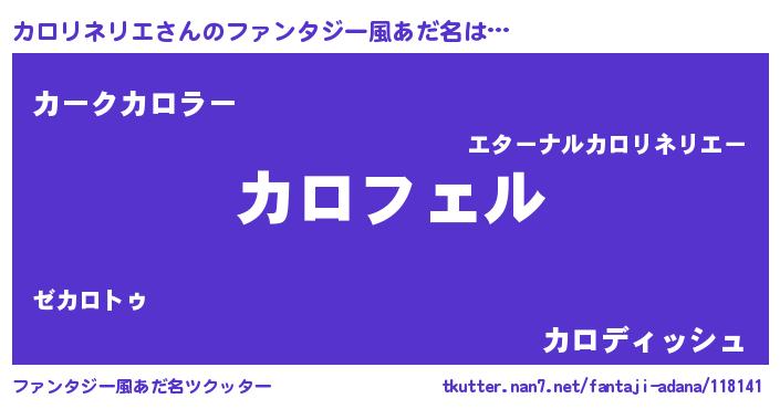 | 男性向けラノベタイトル風あだ名 | 『カロリネリエアートオンライン』 |