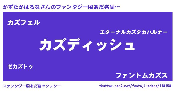 | ヒーロー風カッコイイあだ名 | 『ネオカズタカハルナ』『暗黒騎士カズ』 |