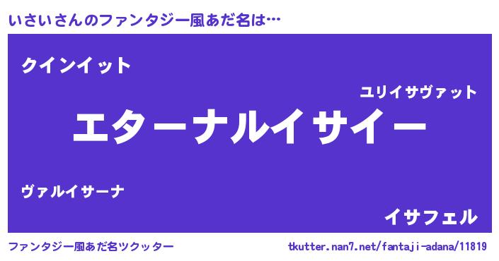 | 女子向けラノベタイトル風あだ名 | 『いさいの雑貨屋さん』『いさい恋絵巻』 |