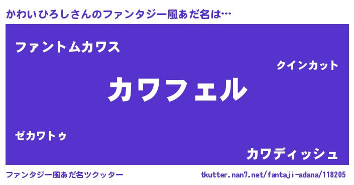 | ヘコむあだ名 | 『かわにゅー』『かわ太郎』 |