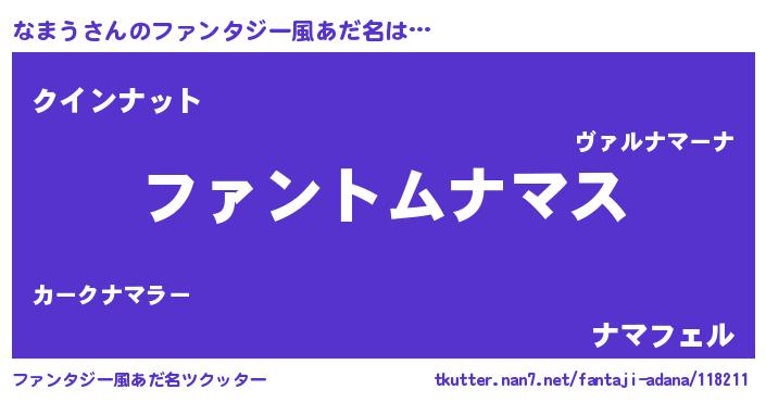 | 恥ずかしいあだ名 | 『ナマリンリン』『ボンバーヘッドなま』 |