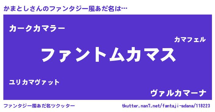 | 意味不明あだ名 | 『とにかく怪しいかまとし』 |