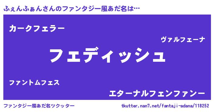 | 女子向けラノベタイトル風あだ名 | 『異世界で失敗しない100のふぇんふぁん』 |