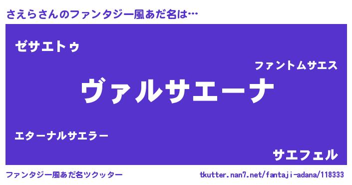 | ヒーロー風カッコイイあだ名 | 『仮面サエダー』『最強戦士サエラ』 |