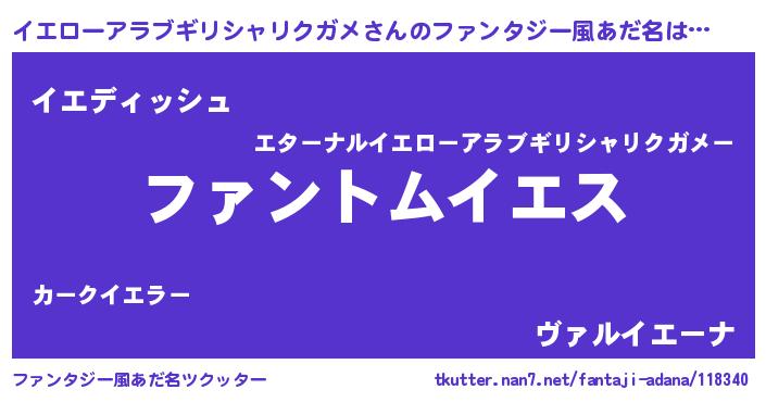 | 欧米人風あだ名 | 『ウサインイエローアラブギリシャリクガメ』 |