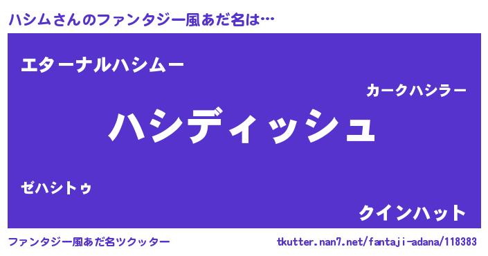 | ヒーロー風カッコイイあだ名 | 『ネオハシム』『ウルトラハシムマン』 |