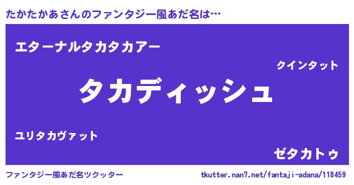 | 男性向けラノベタイトル風あだ名 | 『たかたかあという概念が存在しない退屈な世界 』 |
