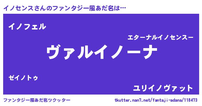 | 女子向けラノベタイトル風あだ名 | 『悪役イノセンスに転生したようですが、知った事ではありません』 |
