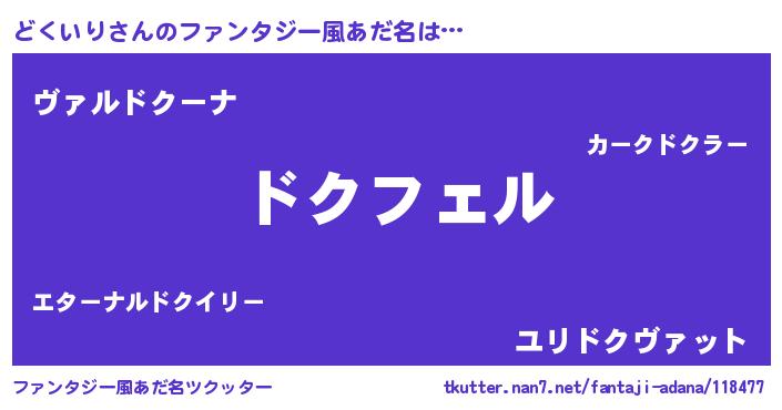 | ヒーロー風カッコイイあだ名 | 『スーパードクイリ』『仮面ドクダー』 |
