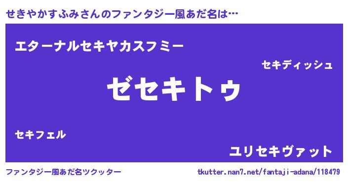 | 意味不明あだ名 | 『自称せきやかすふみ』 |