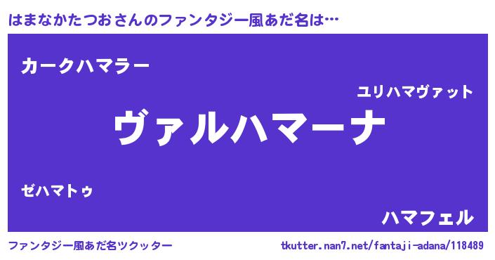 | 男性向けラノベタイトル風あだ名 | 『この素晴らしい世界にはまなかたつおを!』 |