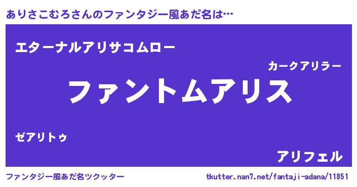 | 女子向けラノベタイトル風あだ名 | 『ありさこむろは平凡を望む』 |