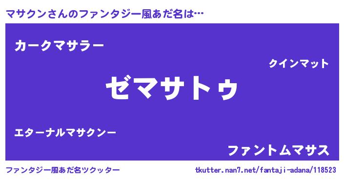 | 男性向けラノベタイトル風あだ名 | 『Re:マサクンから始める異世界生活』 |