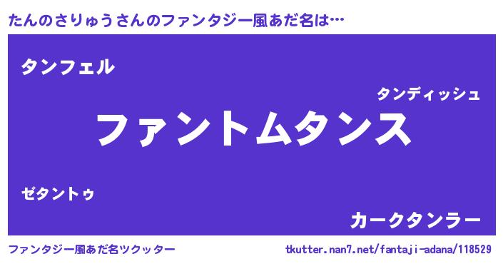 | ヒーロー風カッコイイあだ名 | 『魔戒騎士タン』『ネオタンノサリュウ』 |