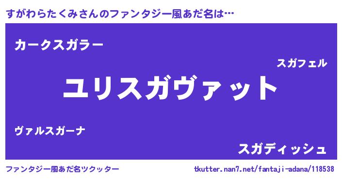 | 伝説のあだ名 | 『古より伝わる吟遊詩人すがわらたくみ』 |