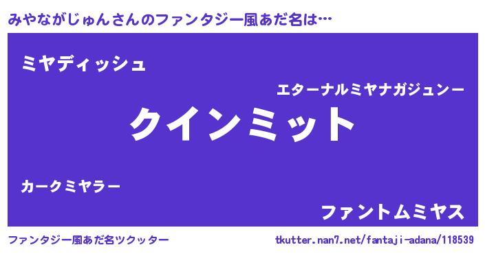 | 男性向けラノベタイトル風あだ名 | 『ノーゲーム・ノーミヤナガジュン』 |
