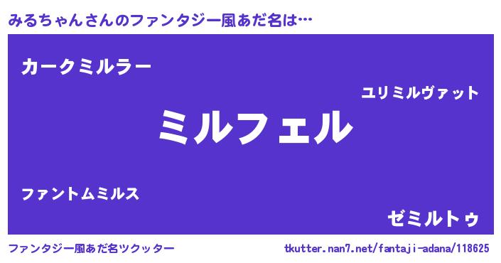 | 男性向けラノベタイトル風あだ名 | 『ミルチャンアートオンライン』 |