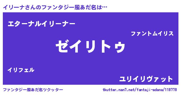 | 女子向けラノベタイトル風あだ名 | 『イリーナなんてお断りですっ。』 |