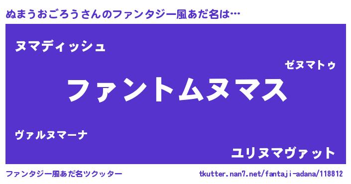 | 男性向けラノベタイトル風あだ名 | 『はたらくぬまうおごろうさま!』 |