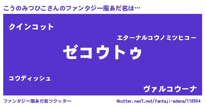 | 意味不明あだ名 | 『自称こうのみつひこ』 |