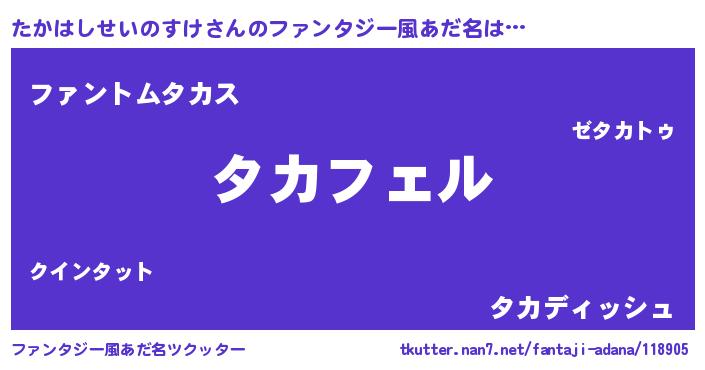 | ポケモン風あだ名 | 『タカチュウ』『ヒタカハシセイノスケ』 |