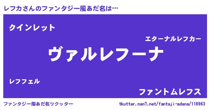 | 意味不明あだ名 | 『住所不定無職レフカ(8歳)』 |