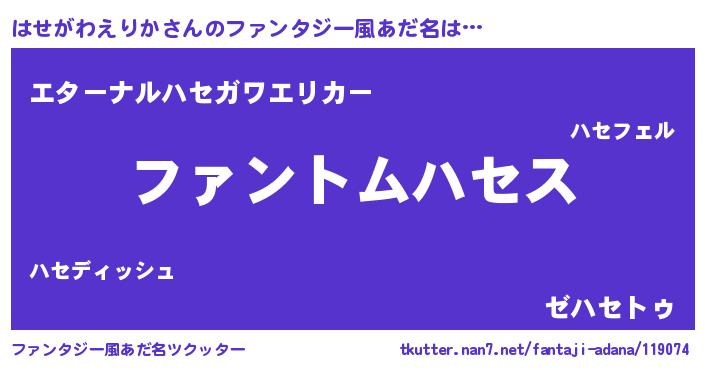 | 意味不明あだ名 | 『とにかく怪しいはせがわえりか』 |