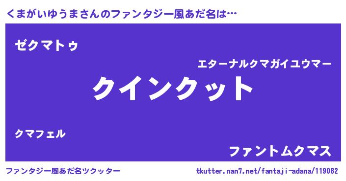 | 男性向けラノベタイトル風あだ名 | 『ノーゲーム・ノークマガイユウマ』 |