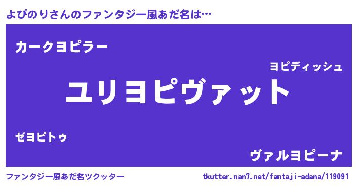 | 男性向けラノベタイトル風あだ名 | 『ヨピノリスレイヤー』 |