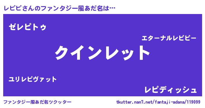 | 女子向けラノベタイトル風あだ名 | 『レピピ恋絵巻』『レピピの契約王妃』 |
