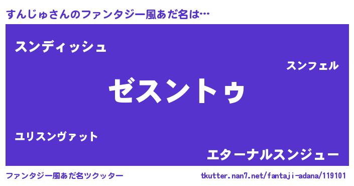 | 意味不明あだ名 | 『自称すんじゅ』『永久保存すんじゅ』 |