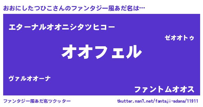 | 女子向けラノベタイトル風あだ名 | 『おおにしたつひこ姫と円卓の騎士』 |