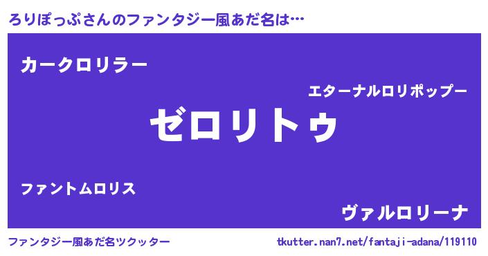 | 男性向けラノベタイトル風あだ名 | 『Re:ろりぽっぷから始める異世界生活』 |